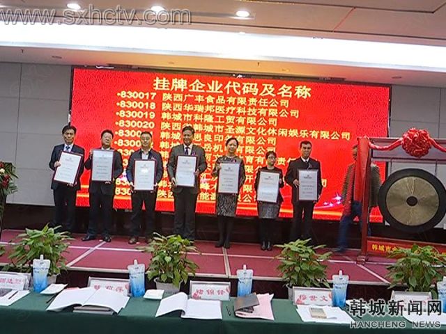 掛牌儀式上,市金融辦就韓城市金融服務(wù)有限公司企業(yè)掛牌服務(wù)工作進(jìn)行匯報(bào),陜西股權(quán)交易中心和我市領(lǐng)導(dǎo)分別為廣豐食品、華瑞邦醫(yī)療、科隆工貿(mào)、圣源文化、思良印務(wù)、五岳機(jī)電、銀河體育、優(yōu)米商貿(mào)、中匯地產(chǎn)、登峰木業(yè)、海鑫能源等11家企業(yè)授牌。